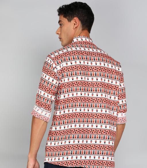 mens peach printed kurta