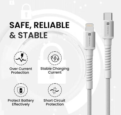 Portronics Konnect X Type C to 8-Pin 27W Fast Charging Cable, Premium TPE Material, Support to all Lightning Devices 1M Length
