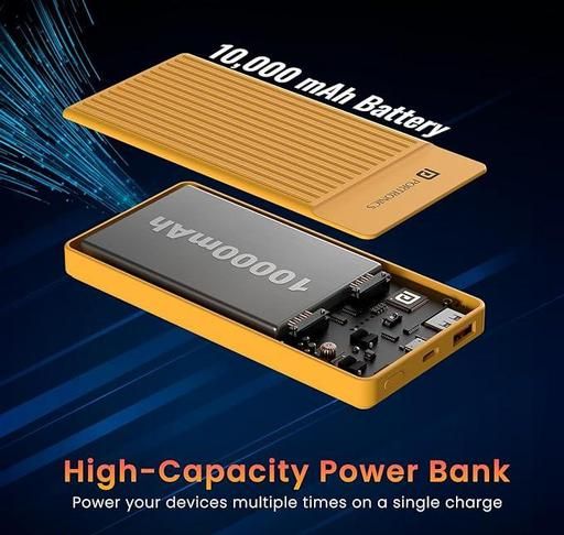 Name: Luxcell B12 10,000mAh 12W Power Bank, Ultra Slim Power Bank with USB-A Output Port & Dual Input Ports (Micro & Type C Input Ports) | BIS Certified | Free Type C Cable| Made in India(Yellow)