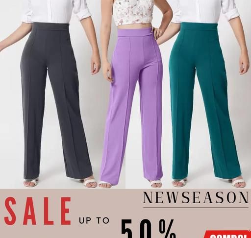 Name: High-waisted Trendy bell bottoms high-rise trouser pants for women Combo of 3