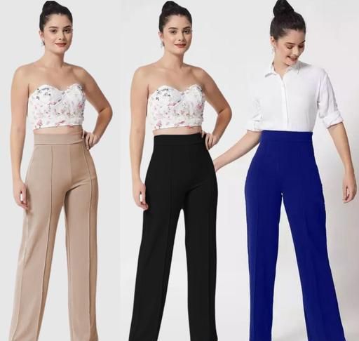 Name: High-waisted Trendy bell bottoms high-rise trouser pants for women Combo of 3