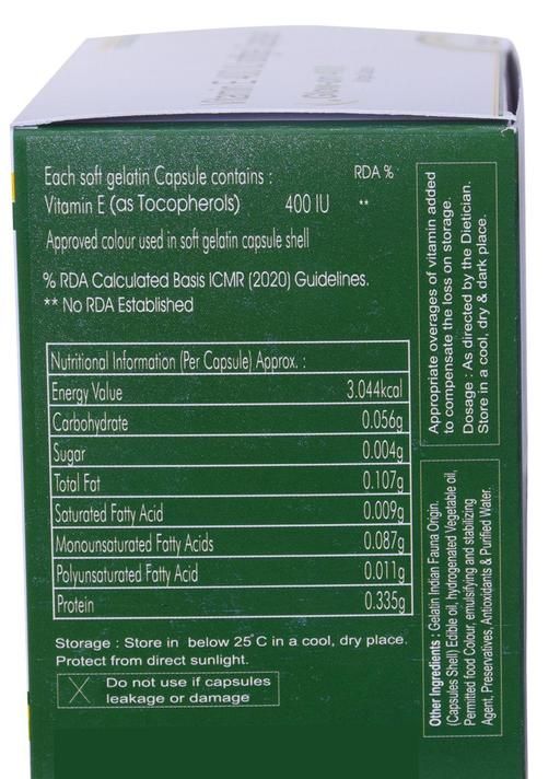 Promotes healthy skin : Ourdaily Vitamin E’s anti-oxidant properties helps protect cells from damaginges effect of from free radicals. This helps in fighting signs of ageing like wrinkles and dark spots, and also helps the skin remain firm and soft