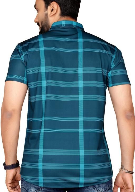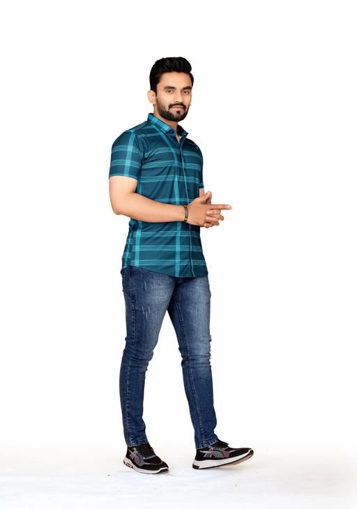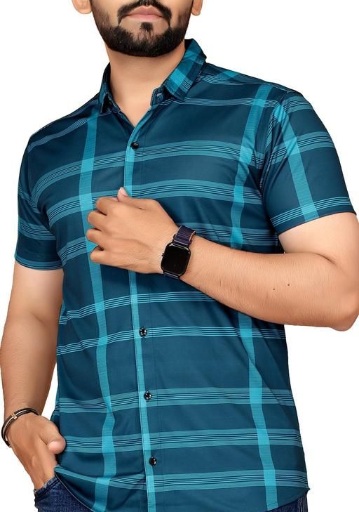 Name: Men's Checked Regular Spread Collar Aqua Blue Shirts