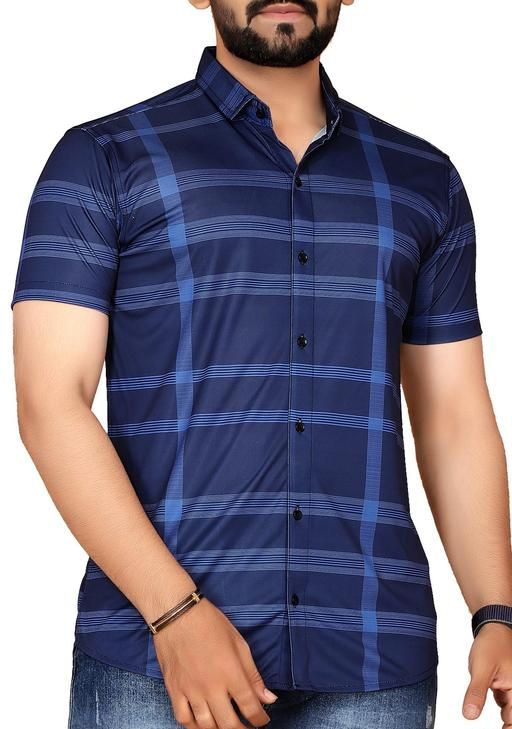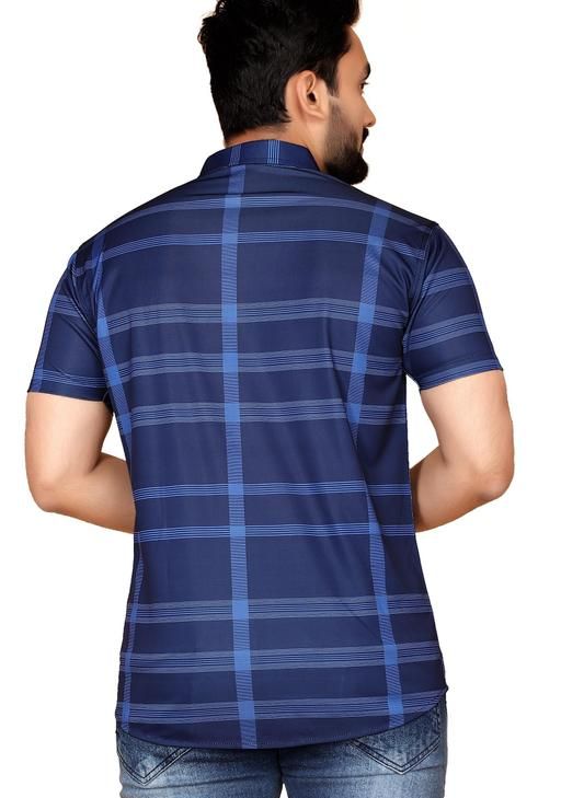 Name: Men's Checked Spread Collar Navy Blue Shirts