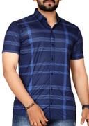 Men's Checked Spread Collar Navy Blue Shirts