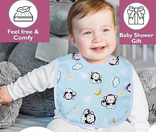 Water-proof, odor-proof and stain-proof. Useful while feeding the baby as the absorbent fabric instantly soaks in spills, dribbles, drools. Button for ease. Simply wipe clean in seconds. Soft material and cute design.