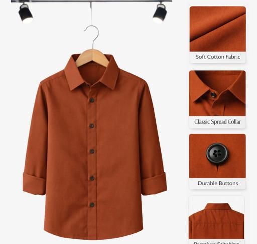 This breathable cotton kids shirt provides a soft feel and relaxed fit for everyday activities. Designed with a simple collar and quality buttons, this boys shirt maintains a neat appearance. Available in Maroon, Green, Black, Orange, Rust, and Pista colors. Suitable as a shirt for kids for casual wear. Sizes 2 year to 12 year.