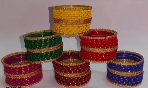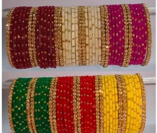 Handcrafted Artistry: Our bangles boast intricate handiwork, with each piece delicately adorned with 24 unique designs. From traditional motifs to modern patterns, every detail is meticulously crafted by skilled artisans, adding a touch of artisanal charm to your ensemble.