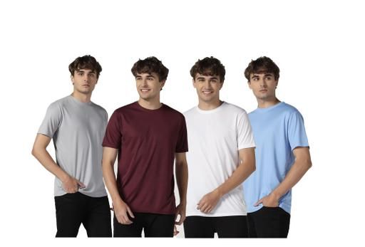 Name: men solid regular fit roundneck tshirt combo pack of 4 light grey , maroon , white , sky blue