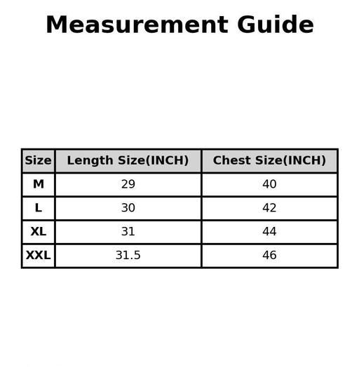 XL (Chest Size: 42 in, Length Size: 29 in)