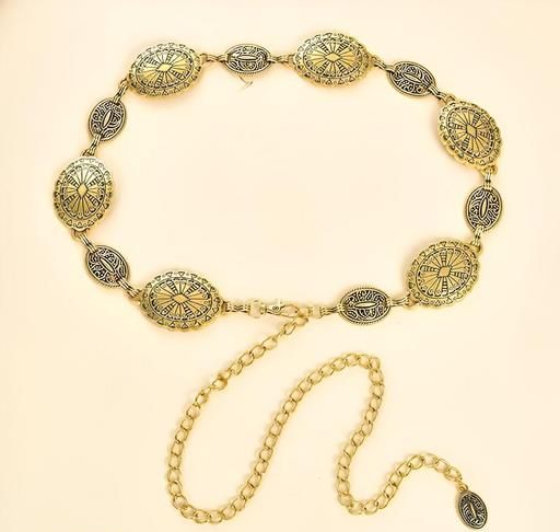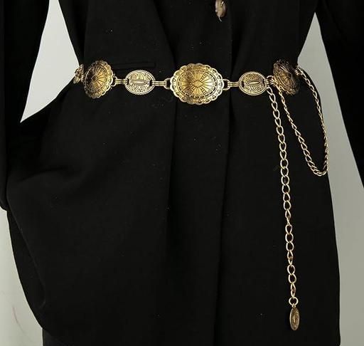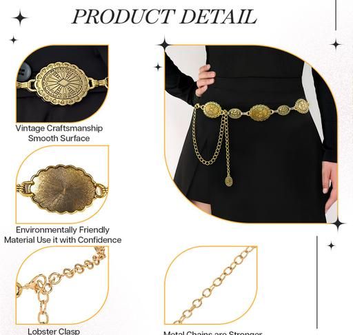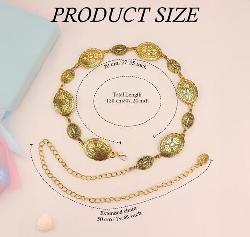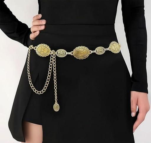 Name: Women's Metal Waist Chain with Antique Oval Ethnic Design, Adjustable Kamarband for Sarees, Dresses & Ethnic Wear – Free Size