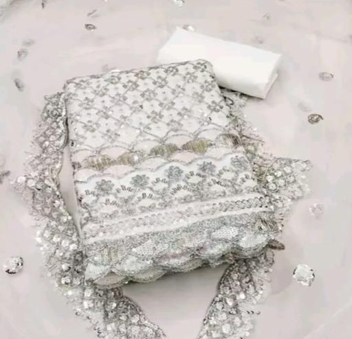 Elegance Unveiled: The Unstitched Net Suit with Exquisite 3 and 5 mm Sequin Work Women's PAKISTANI SUIT FOR WOMENS TOP DUPPATA EMBROIDED Unstiched Double Sequence Embroidered Work Plus Double Salwar Suit & Dress Materials WHITE Colours Unstiched NET Suits Womens Trending Fashion NET SUITS HEAVY Bottom Work Heavy Fancy Top Work And Fancy Duppata Sequence Work With Latkans Garara Suit , Party Wear Suit , Best Deal Suit , New Arrivals , Work Wear Suit , Fresh Collection , Sharara Suit , Engagement Womens Suit , Sangeet Womens Suit , Wedding Womens Suit , Daily Wear Suit , HaldiFunction Wear Suits All Occastions Wear Suit Step into a world of timeless elegance with our unstitched net suit adorned with intricate sequin work, meticulously crafted to captivate hearts and minds alike. This ethereal ensemble is a masterpiece, embodying grace and sophistication in every thread. The sheer net fabric gracefully drapes the body, exuding an aura of sheer luxury and allure.What sets this unstitched suit apart is the meticulous attention to detail in its design. Delicate 3mm and 5mm sequins intricately hand-sewn onto the fabric create a mesmerizing play of light and shadow, adding depth and dimension to the ensemble. Each sequin sparkles like a star in the night sky, casting a spellbinding effect that is short of magical.The beauty of this unstitched suit lies not only in its exquisite craft