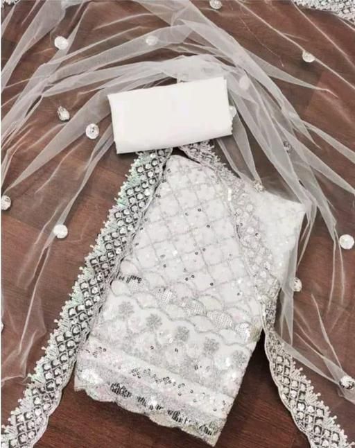 Name: Elegance Unveiled: The Unstitched Net Suit with Exquisite 3 and 5 mm Sequin Work Women's PAKISTANI SUIT FOR WOMENS TOP DUPPATA EMBROIDED Unstiched Double Sequence Embroidered Work Plus Double Salwar Suit & Dress Materials WHITE Colours