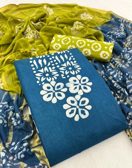New batik collection top-2.3 mtrs, bottom - 2.1 mtrs , dupatta- 2.1 mtrs, all over hand batik with pure cotton fabric