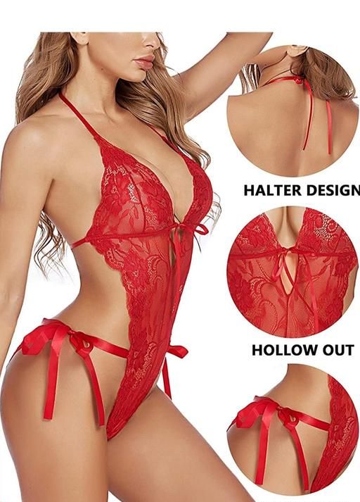 Name: Women's Polyester Spandex & Lace Floral Above Knee Babydoll Lingerie Set For Woman(Red)|Lingerie Set For Woman|Night dress|honeymoon dress for women|Sexy nightwear|