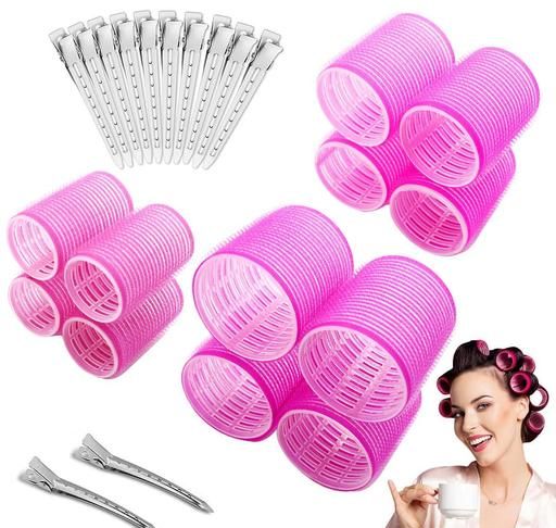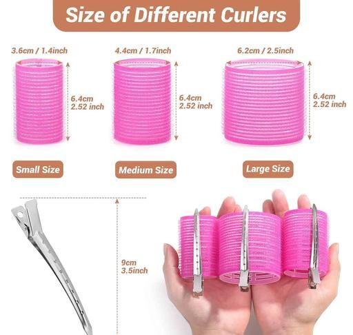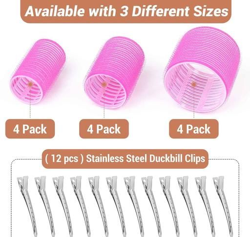Name: Velcro Self Grip Hair Rollers Curlers with 12Pcs Heatless Hair Rollers 3 Sizes (4 Jumbo, 4 Large & 4 Small) and 12 Pcs Hair Clips for Long Short Thick Fine Thin Hair Volume