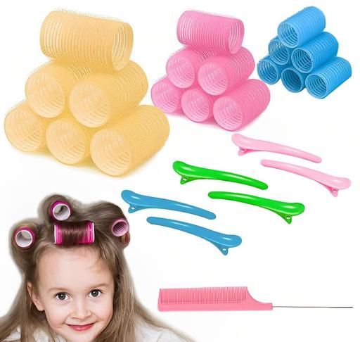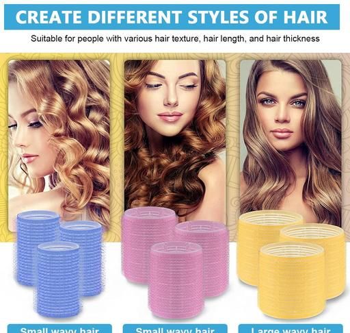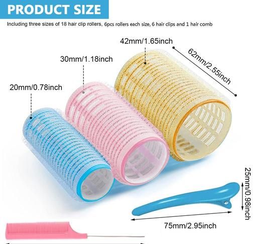 Name: Velcro Self Grip Hair Rollers Curlers with 18Pcs Heatless Hair Rollers 3 Sizes (6 Jumbo, 6 Large & 6 Small) and 12 Pcs Hair Clips multicolour for Long Short Thick Fine Thin Hair Volume
