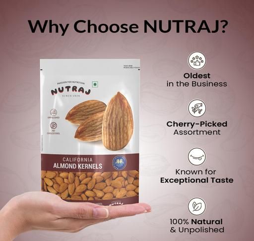 It's time to enjoy delicious almonds brimming with nutritious goodness in Nutraj Super Value California Almonds. Consisting of 100% fresh almond kernels, they are sourced from California and come with a nutty crunch. They are enriched with digestible fats, calcium, phosphorus, and copper, ensuring they provide all the nutritional goodness. These almond kernels are versatile and flavourful, making them a great addition to salads, cereals, oatmeals, and trail mixes. For the best taste and nutrition, grab a pack of Nutraj Super Value California almond kernels.