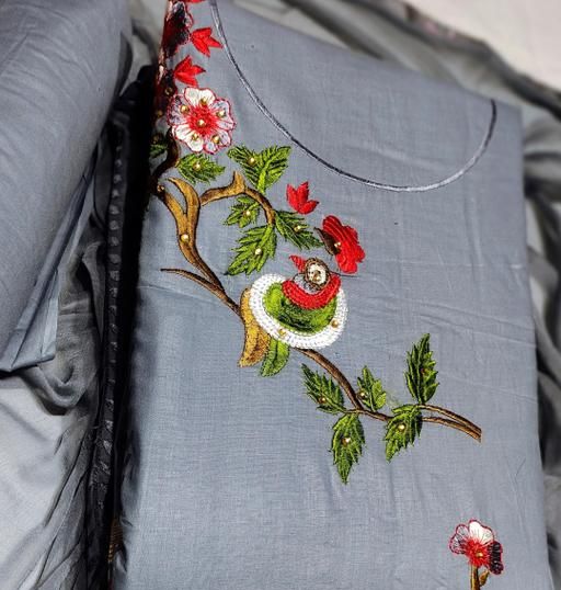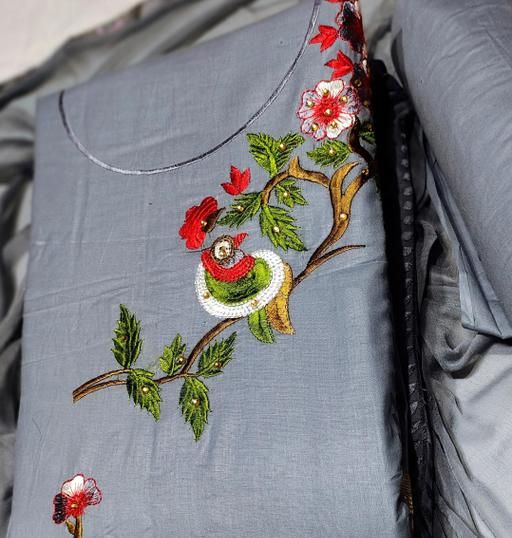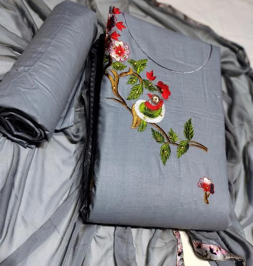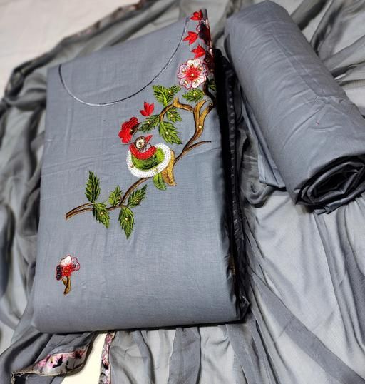 PURE COTTON FANCY EMBROIDERY WORK SUIT WITH PURE NAZNEEN DUPATTA (TOP+BOTTOM+DUPATTA)
