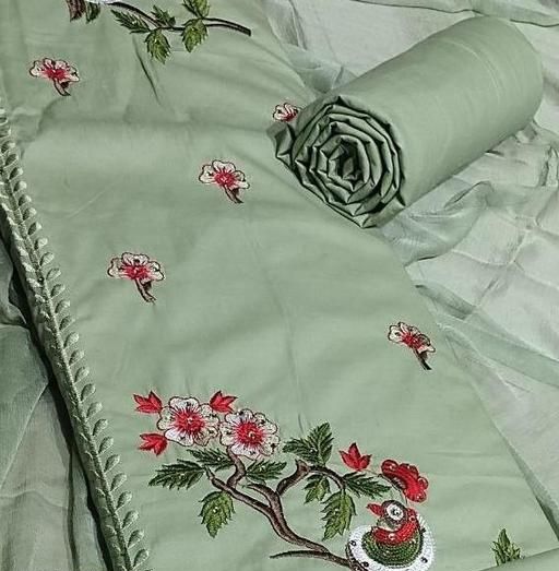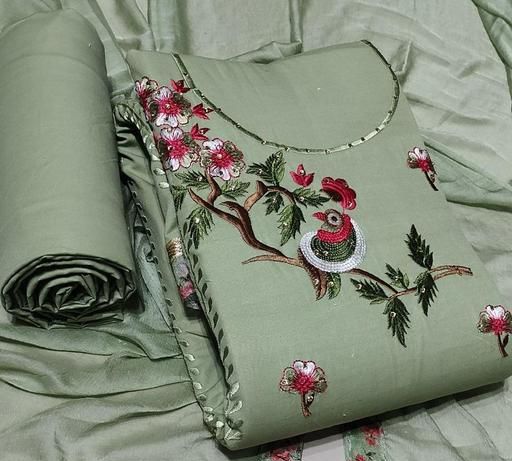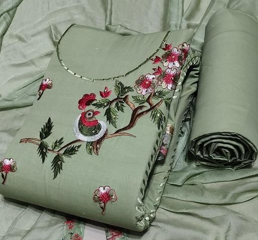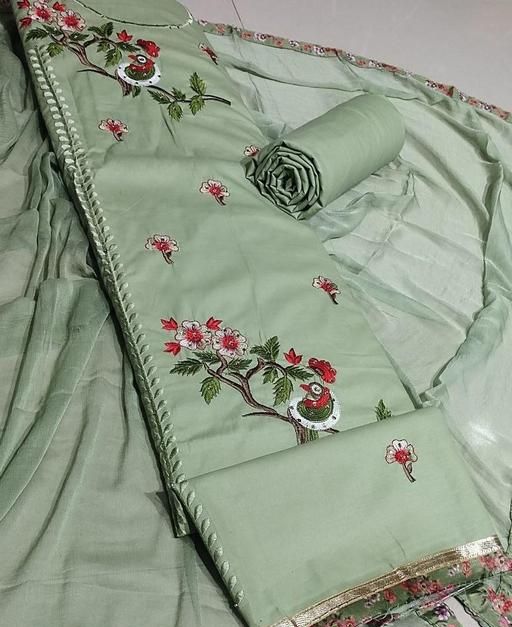 PURE COTTON FANCY EMBROIDERY WORK SUIT WITH PURE NAZNEEN DUPATTA (TOP+BOTTOM+DUPATTA)