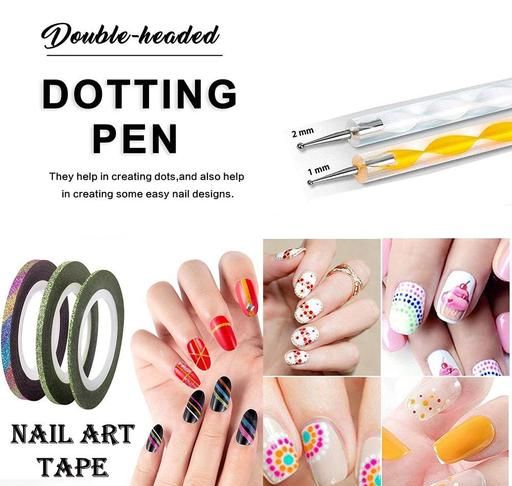 4)-02 pcs nail art 2-way drawing dotting painting pen, 02 pcs assorted colors nail striping tape, meets all you need for perfect nail art.
