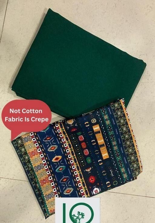 Name: Polyster/Crepe fabric-New Beautiful design Kurti Fabrics Crepe Printed Fabric 2.5 Meters +Plain Crepe 2.5 Meters plain suit,dress material combo for women,suit material 5 meter,dress material materialchuridar material combo.