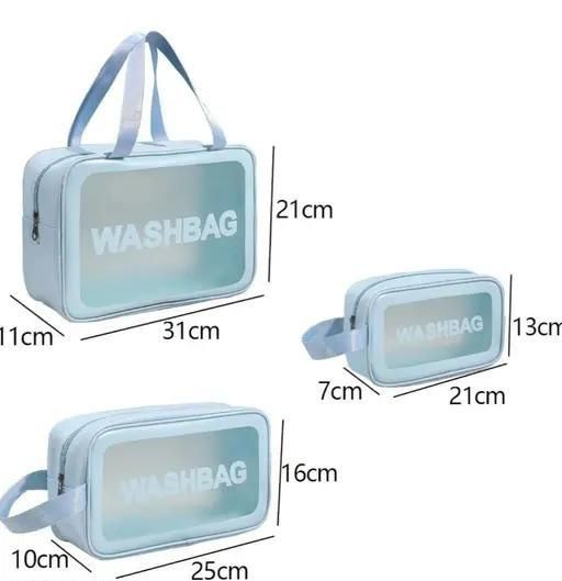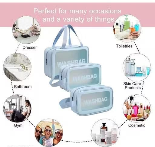 Name: Set of 3 Clear Toiletry Bag, Wash Make Up Bag PVC Waterproof Zippered Cosmetic Bag, Portable Carry Pouch for Women Men