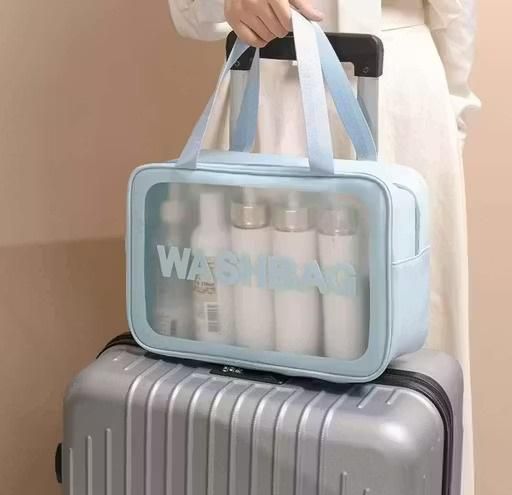 The sizes of three transparent travel bag is about 30x22x11 cm, 26x16x09 cm, 21x12x07 cm (LxWxH), it has enough space to store our items and meet different requirements for various purposes.MATERIAL QUALITY : This makeup bags are made of Premium PU leather and waterproof PVC material. There is Premium zippers, sturdy hook, easy to access. Effective protection is good for your cosmetics. Keep them dry at all times without getting wet or damp. The simple and large-capacity style design makes the cosmetic bag look neat and unique.WATERPROOF TOILETRY BAG: The surface of our wash bag is waterproof and easy to dry, the surface can keep the moisture and dirt of the items, just wipe clean and air dry. The chrome-plated zipper head is used for smooth closing.