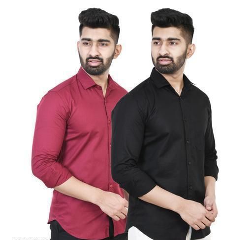 Name: Men's Solid Spread Collar Black Shirts Pack 2
