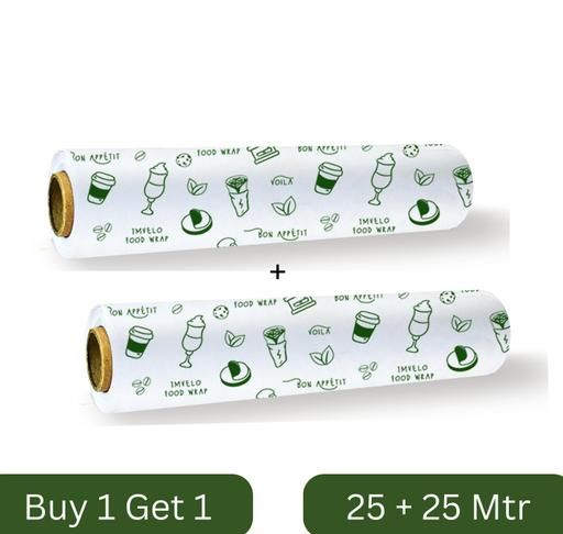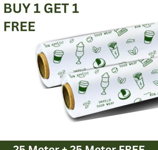 Imvelo Food Wrapping Paper Roll - 25 + 25 Mtr Free,Non-Stick, Oil Proof Butter Paper Roll, Reheatable Foil Paper for Food Wrap, Paper Foil for Chapati, Roti Wrap & More, Wrapping Paper for Food, Parchment Paper
