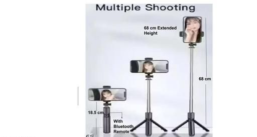 Name: Earphonix 68cm Extendable 3 in 1 Selfie Stick Tripod with Bluetooth Remote Included and Rotatable