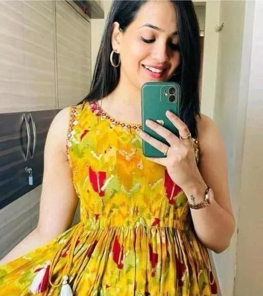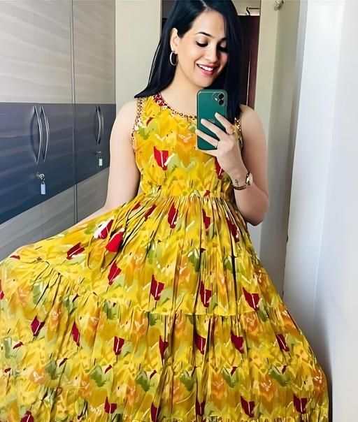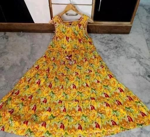 Name: yellow sleeveless printed gown
