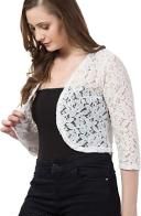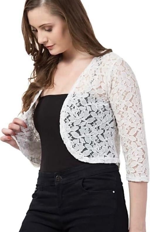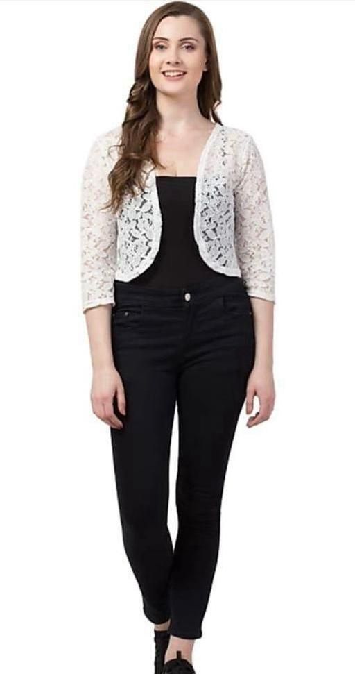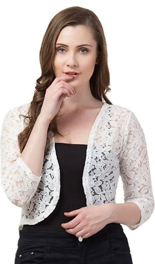 Elevate your style effortlessly with our elegant lace shrugs, designed with 3/4th sleeves and a convenient front-open style. These versatile shrugs beautifully complement strapped dresses, adding a touch of sophistication. They're equally perfect for enhancing the appeal of plain tops or dresses. The elasticated smocking at the back not only adds a unique design element but also ensures a comfortable, customized fit. Choose from a variety of colors to redefine your fashion statement with this essential wardrobe piece today!
