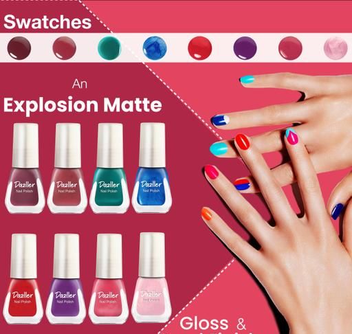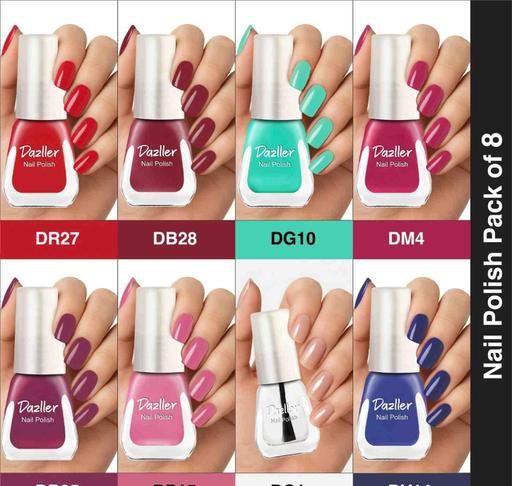 Name: Quick Dry Long Lasting Nail Polish Pack of 8 Multicolor Combo - Chip Resistant, Acetone-Free Formula, Rich Pigmentation - French Nails