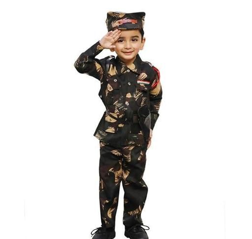 Name: BOYS PRINTED ARMY OR BSF DRESS WITH CAP WHISTEL ROPE GUN GUN COVER FOR FANCY DRESS COMPITITION OR REGULAR WEAR