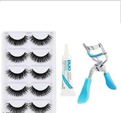 Product Name: False Eyelashes-Set of 5, Eyelashes Glue & Eyelash Curler with Gel Eyeliner (8 Items in the set)