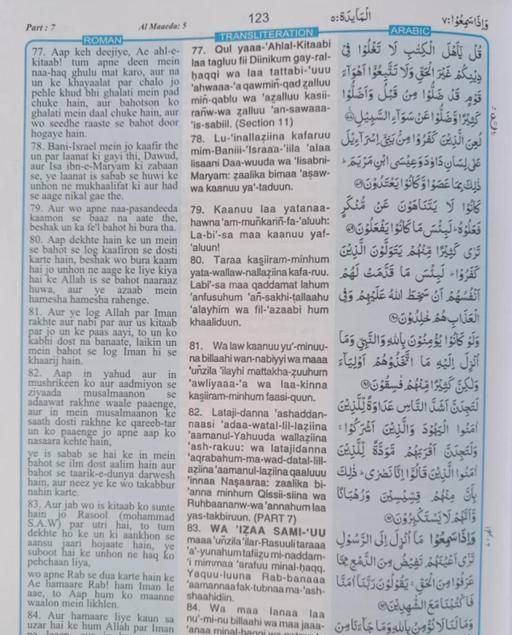 The Holy Quran Urdu Translation in Roman Script with Transliteration and Arabic Text