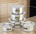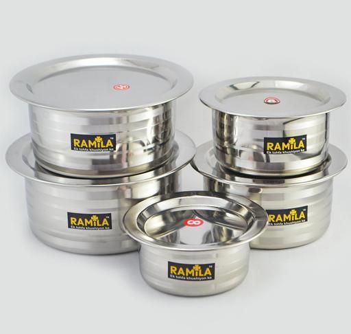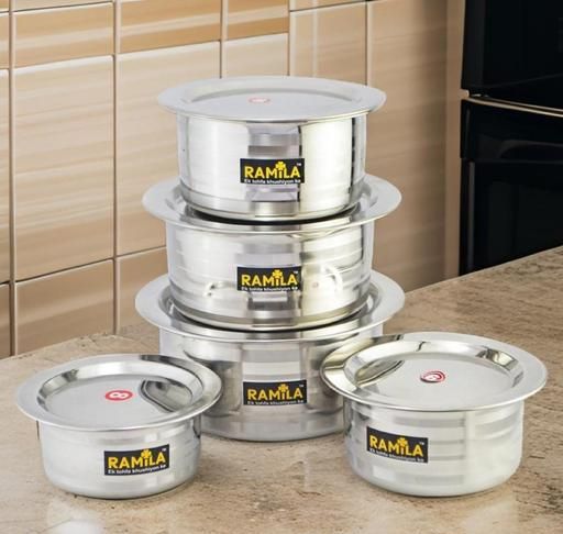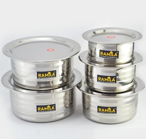 Name: Stainless Steel Patila Set With Lid Flat Bottom Induction & Gas Stove Friendly Tope / Patila / Cookware Set (5 Pieces, 2000ml,1500ml,1000ml,750ml,500ml)