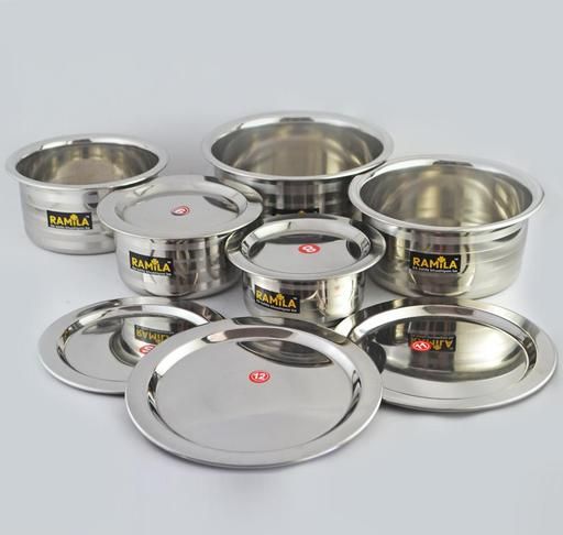 Stainless Steel Patila Bhagona Tope Set With Lid Handi Milk Storage Tapeli Tapela Serving Set Cookware