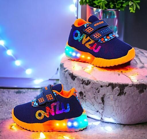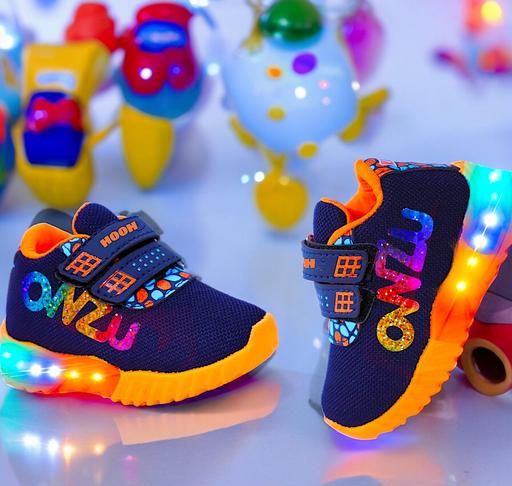 Name: Shoes for Girls and boys Upto 7 years with led light, water proof, breathable, comfortable, daily use party wear, indoor outdoor, Gift, Skin friendly, Summer -Winter, branded sport shoes Blue Orange