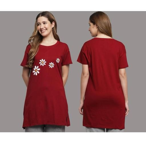 Name: Women's Cotton Printed Long Regular Fit Round Neck Top/T-Shirt/Tshirts- (Pack of 2)