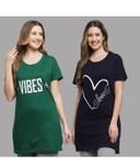 Women's Cotton Printed Long Regular Fit Round Neck Top/T-Shirt/Tshirts- (Pack of 2)