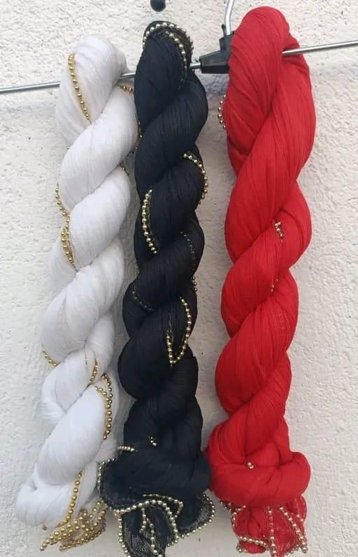 Name: women,s lycra gold pearal four side dupattas combo of 3 pice set> white+black+red> for women girls dupattas