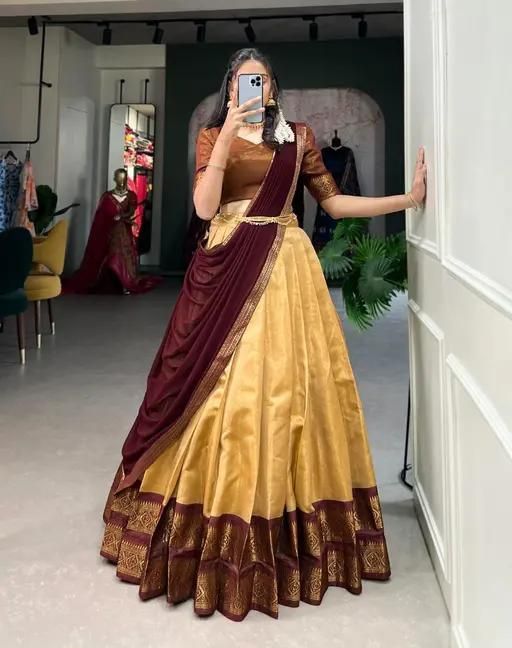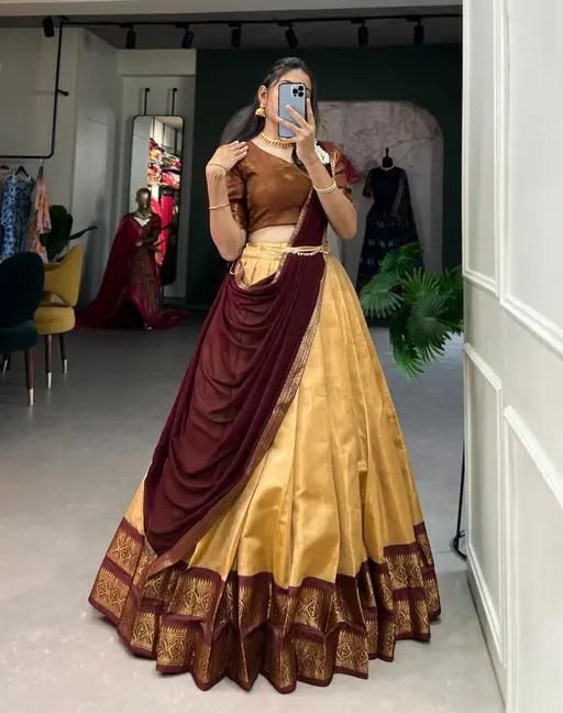 Presenting a perfectly blended Art silk lehenga for festive season to charm your look