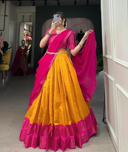 Un Stitched (Lehenga Waist Size: 70 m, Lehenga Length Size: 70 m, Duppatta Length Size: 2.4 m)