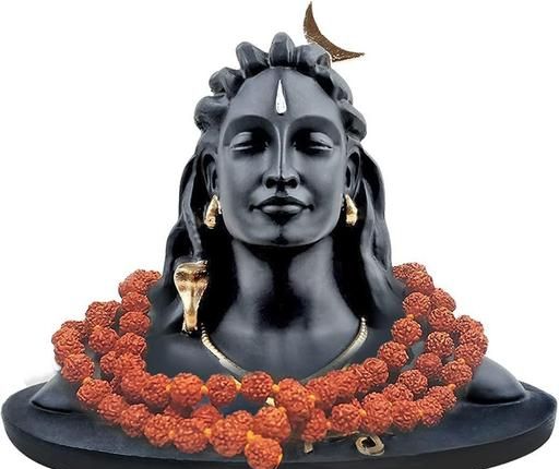 Name: Adiyogi Shiva Statue with Rudraksha Mala for Car Dash Board, Pooja & Gift, Mahadev Murti, Idol, Lord Adiyogi Shankara for Home & Office Decor | 10 cm