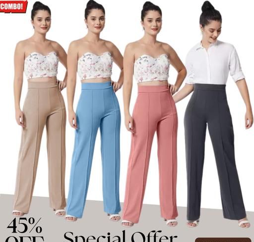 Name: Trendy high-rise bell-bottoms with high-waisted bootcut trousers for women Combo of 4