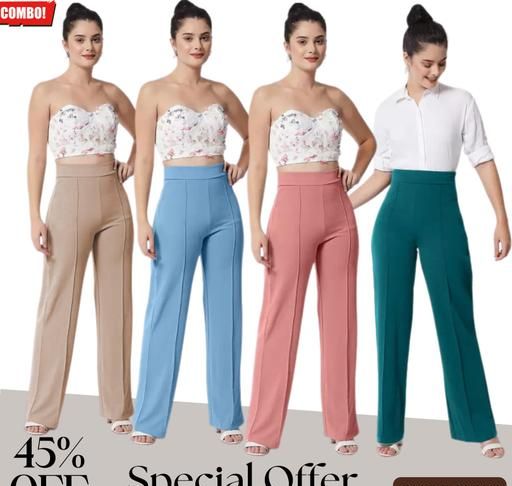 Name: Trendy high-rise bell-bottoms with high-waisted bootcut trousers for women Combo of 4