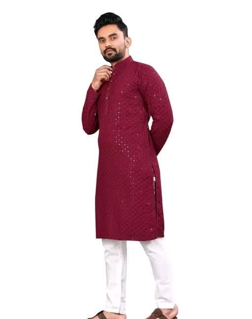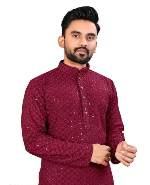 (Kurta Set ) Rayon Fabric Embrodired And Tiki Work Kurta And Pajama Set For Man And Boys
