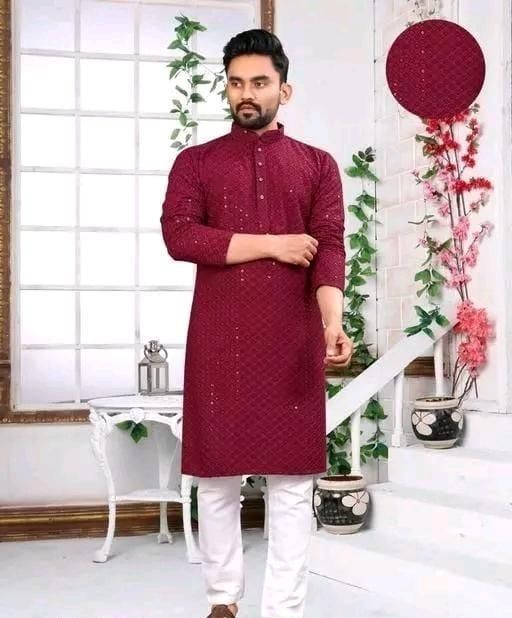 Name: (Kurta Set ) Rayon Fabric Embrodired And Tiki Work Kurta And Pajama Set For Man And Boys